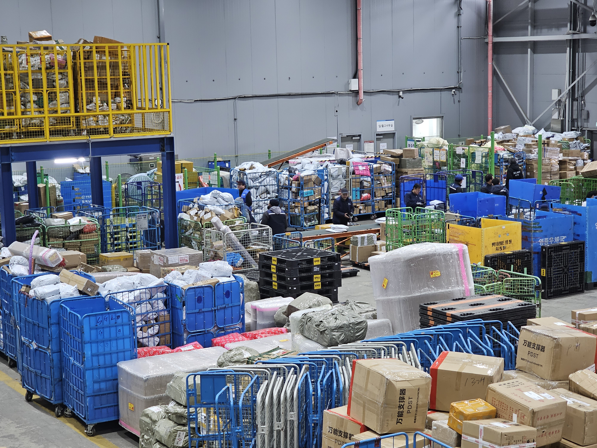 직구센터의 물류 처리 과정은 매우 효율적입니다. 다양한 패키지와 상품들이 정리되어 있는 모습은 마치 잘 조직된 군대와 같습니다.
