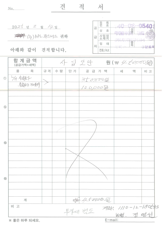 휀다 수리비용은 회사비용으로 수리비용 처리함.