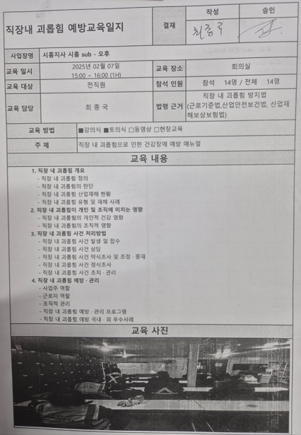이러한 교육을 통해 직원들은 괴롭힘에 대한 인식을 높이고, 이를 예방하기 위한 실질적인 방법을 배울 수 있습니다.