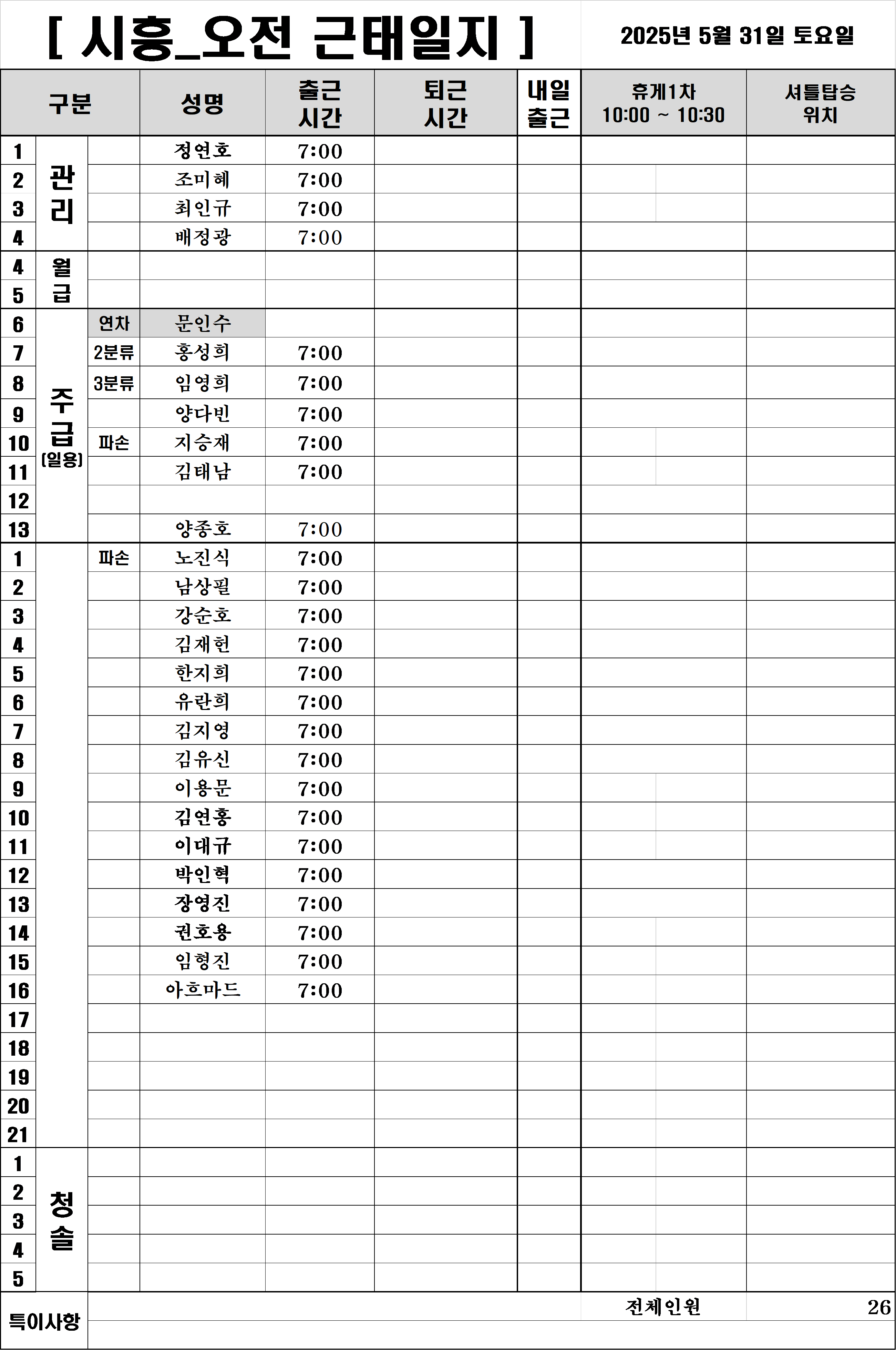 ㅁ. 시흥 5/31 (토요) 인원 운영 계획