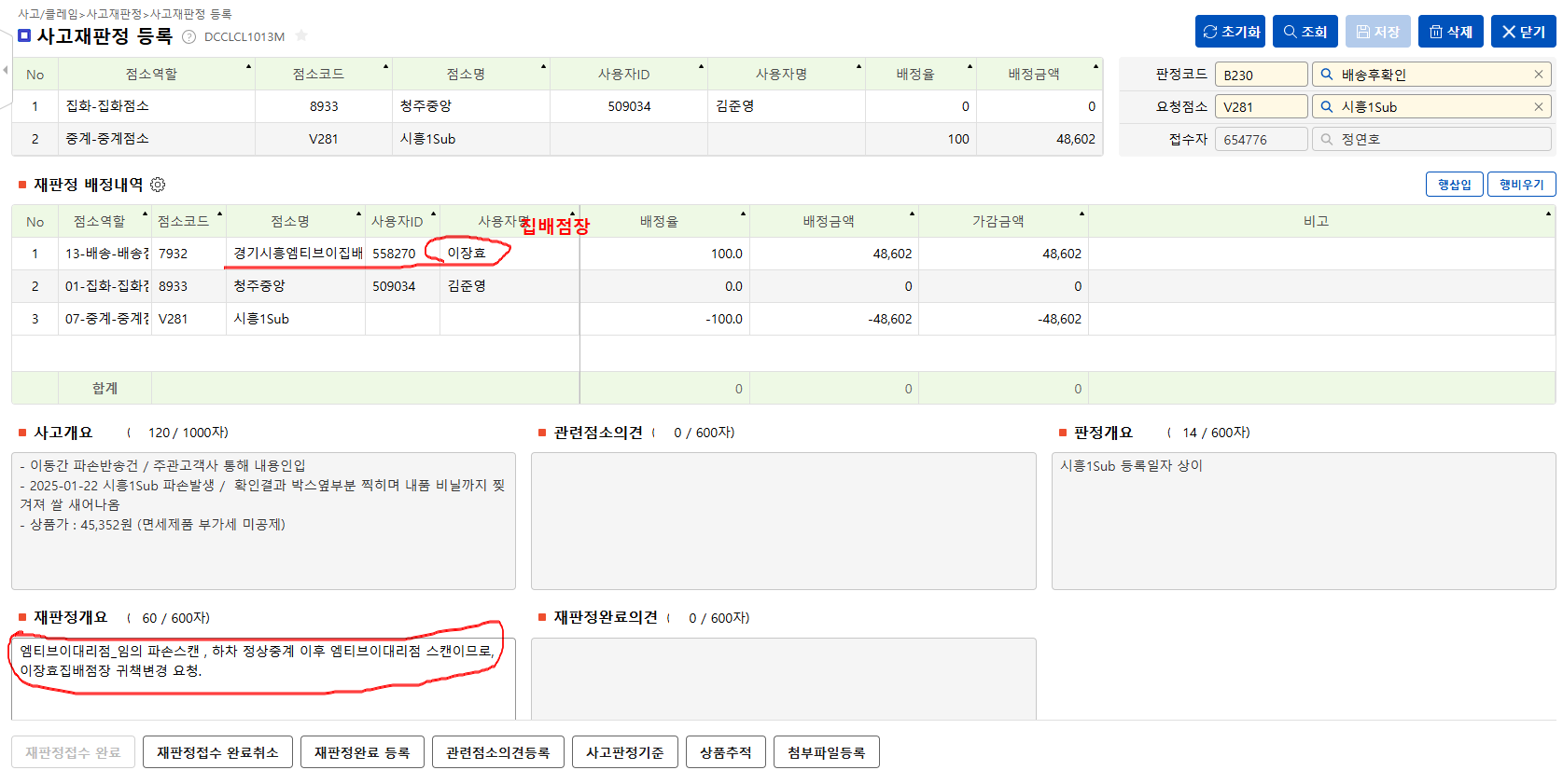 ㄴ. 개선대책 : 각 대리점별 고유사번이 있으므로, 앞으로 임의파손스캔은 집배점장 귀책으로 변경 요청 예정.