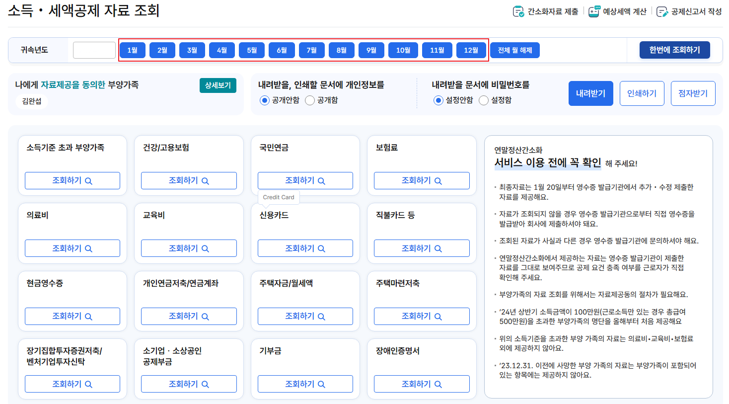 - 홈택스 자료 조회 : 홈택스를 통해 연말정산 간소화 자료를 조회하고, 필요한 자료를 다운로드하여 신고서에 첨부합니다.