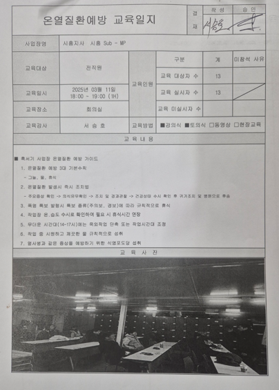 안전서류/온열질환예방 교육일지(혹서기 1회) 2